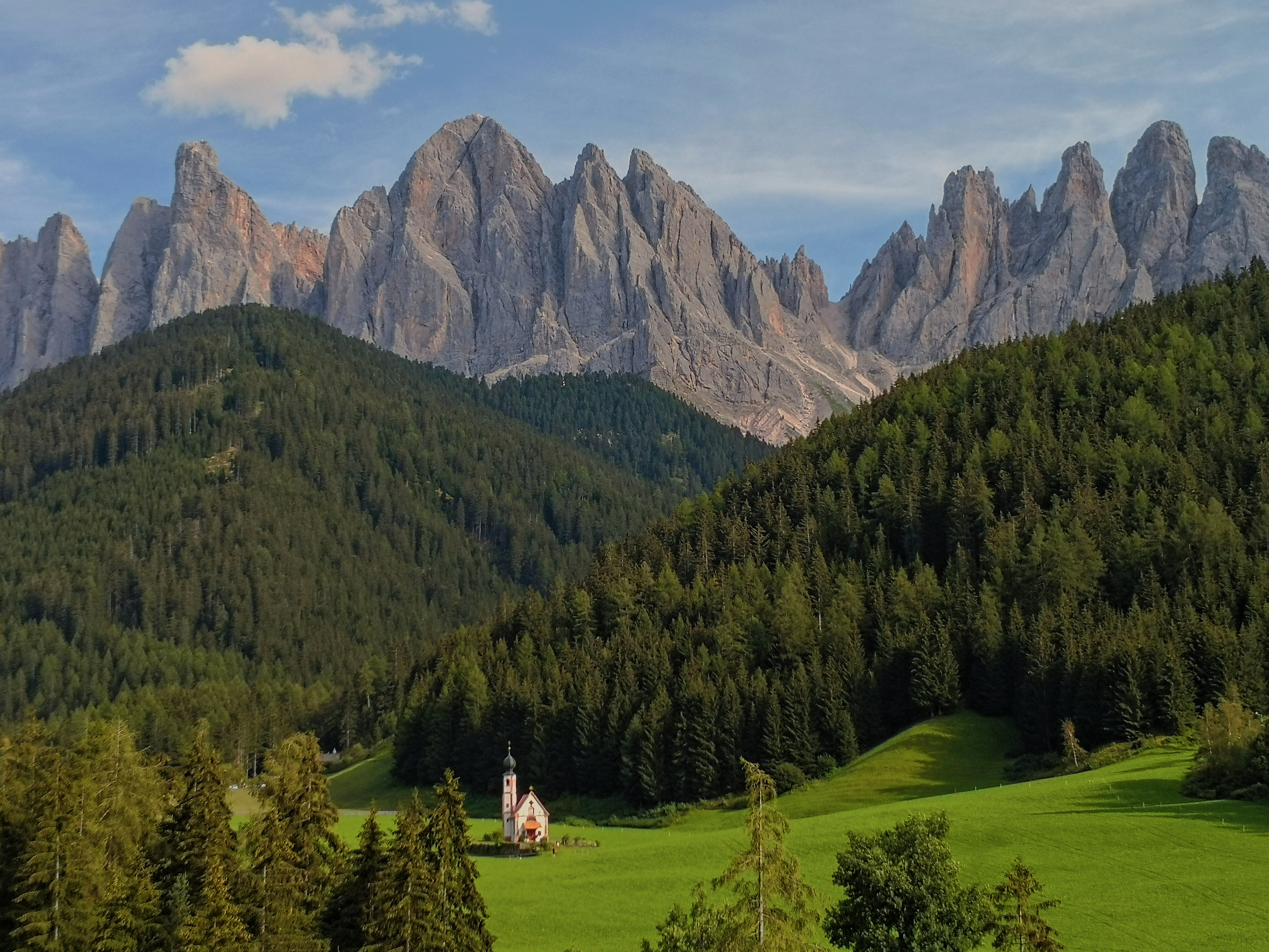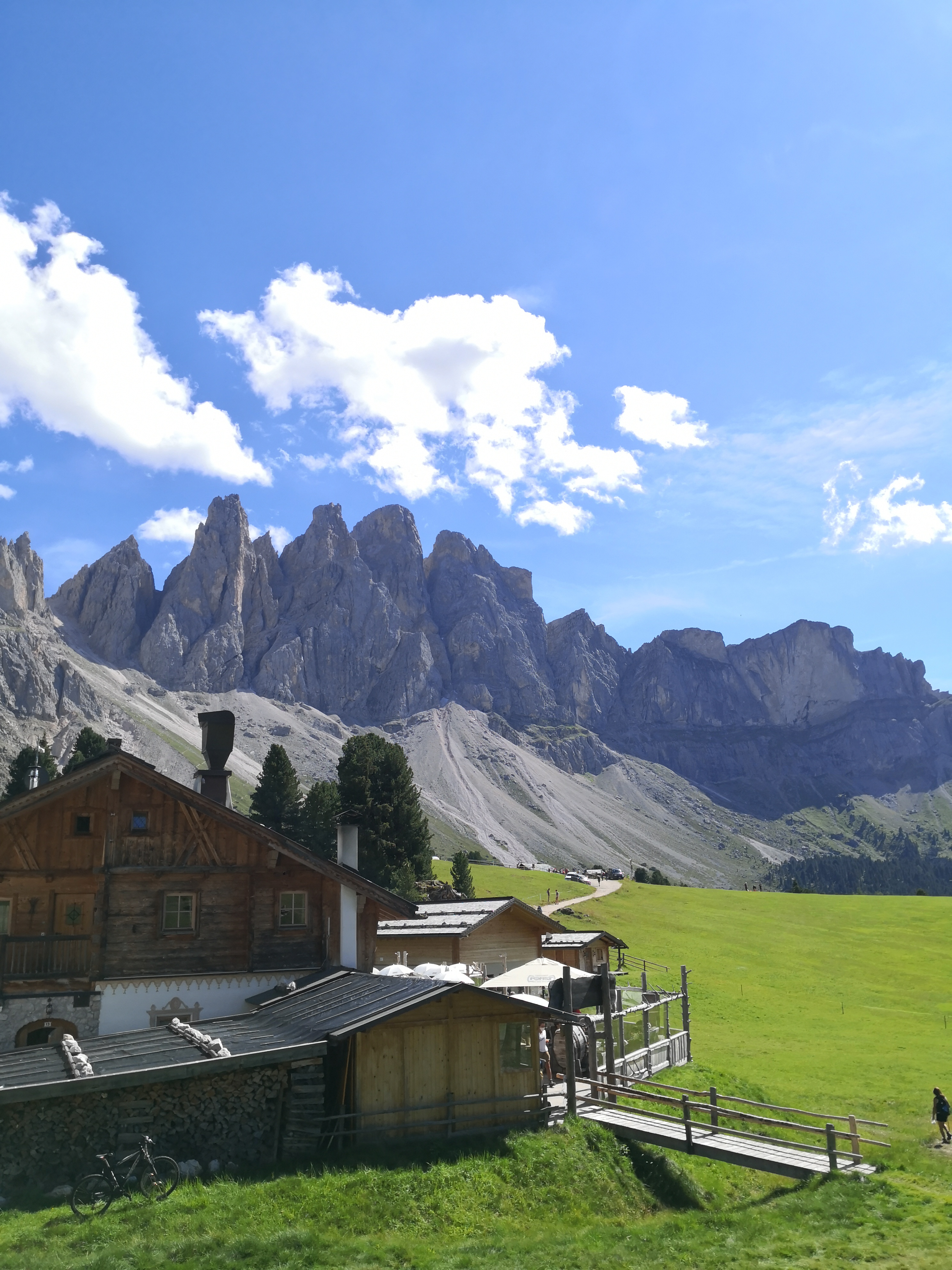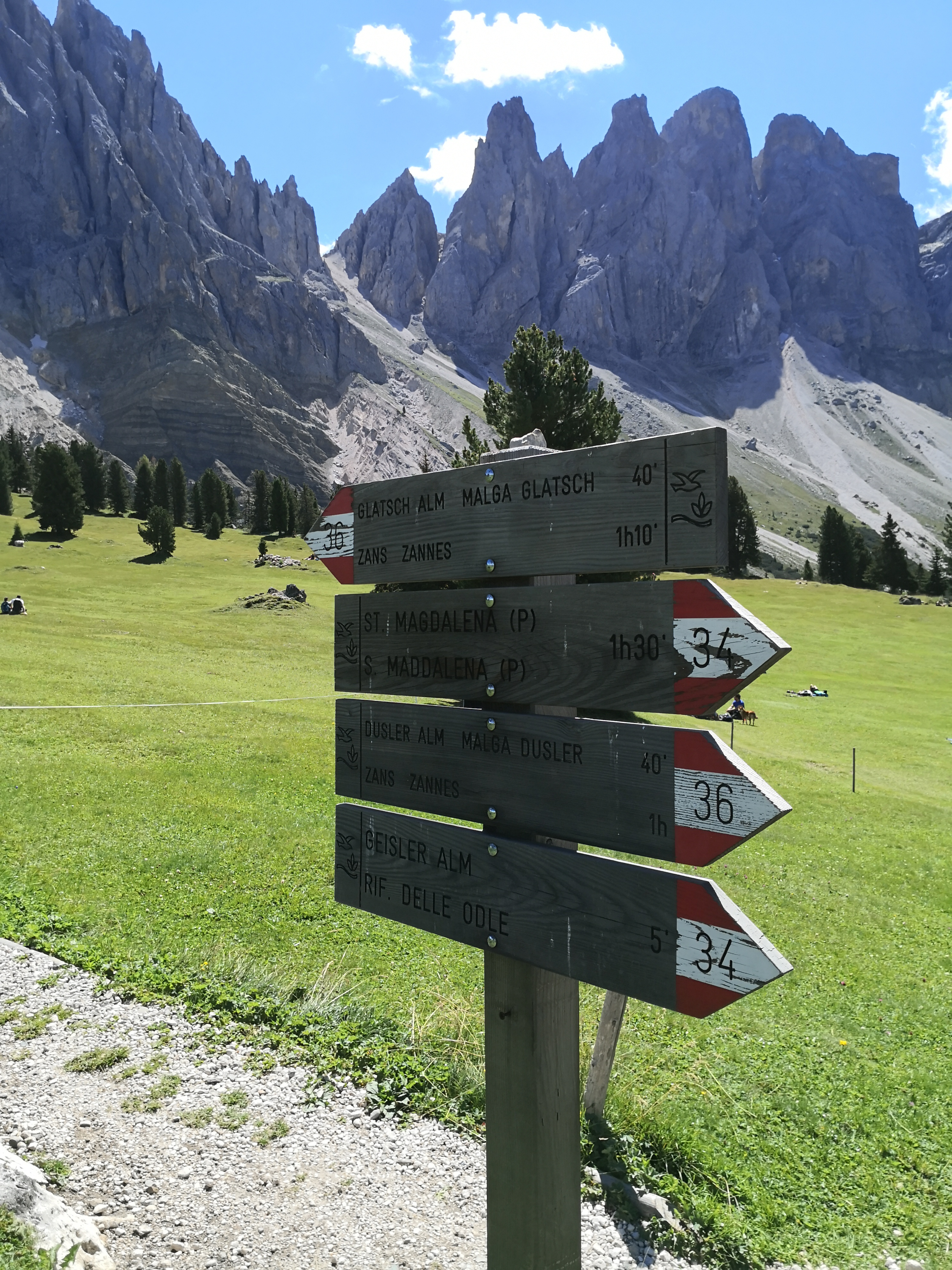 Questa aggiunta non ha a che vedere con le cinque escursioni in Val Gardena, ma ho pensato che le foto scattate fossero meritevoli d’attenzione. La Val di Funes (che dista solo 50 minuti dalla Val Grdena), infatti, è una delle valli più incontaminate dell’Alto Adige, e forse anche la più suggestiva: basti pensare che, cercando “Dolomiti” su Internet, la maggior parte delle fotografie che compaiono provengono proprio da qui! La passeggiata che ho fatto è il famoso giro delle malghe, un sentiero che conduce verso immensi prati verdeggianti da cui sembra sorga, millenaria e indisturbata, l’imponente catena delle Odle.