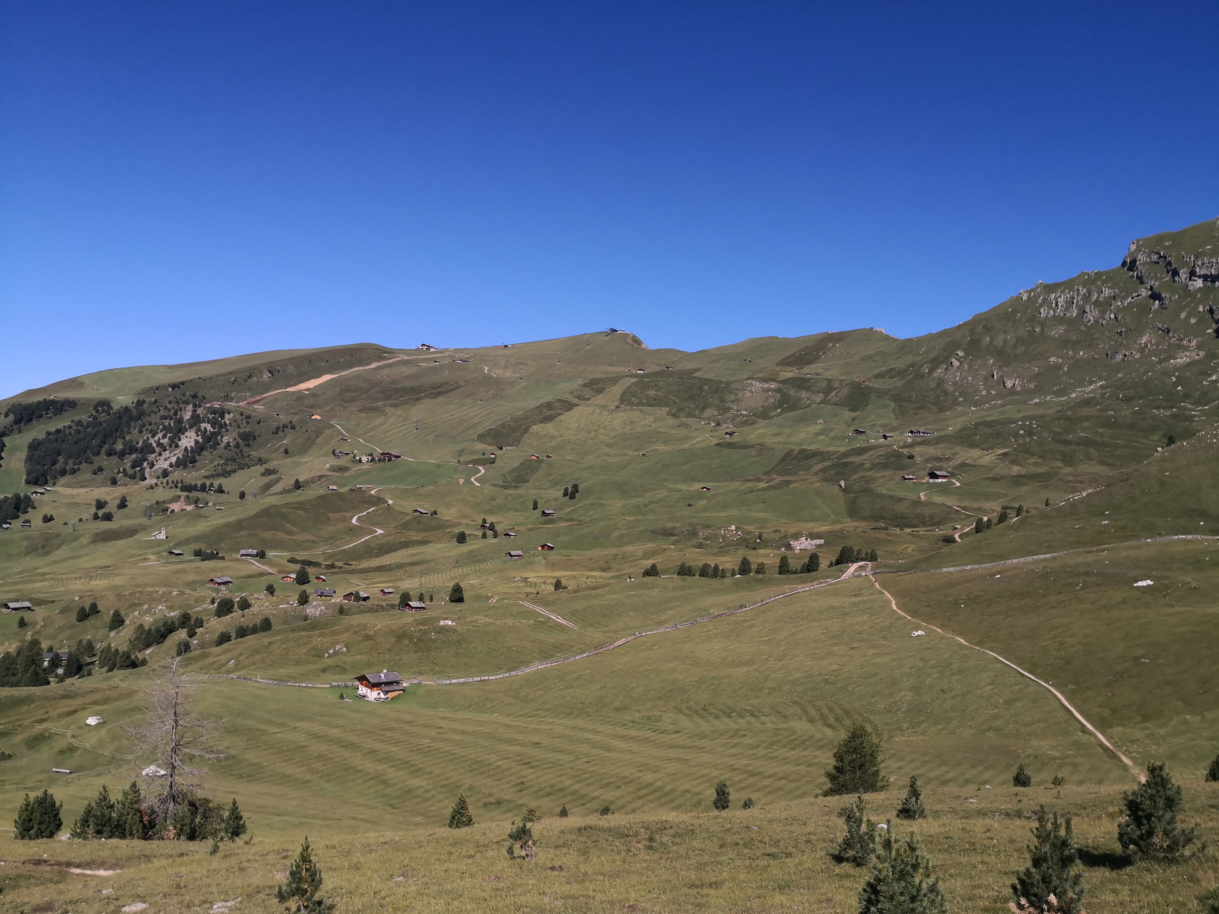 Da Ortisei, prendendo un impianto di risalita, è possibile arrivare all’Alpe di Suisi, un suggestivo altopiano verdeggiante ricco di baite, hotel e malghe. Da qui sono moltissime le passeggiate che si possono fare, ammirando specialmente il massiccio dello Sciliar. L’escursione che ho scelto di fare mi ha permesso di attraversare l’Alpe per intero, in direzione del gruppo del Catinaccio, per poi giungere ai piedi del Sassopiatto e ristorarmi così al rifugio Zallinger. La strada del ritorno, attraverso boschi e altopiani, mi ha condotta fino al Monte Pana, proprio sopra Santa Cristina, da cui sono scesa fino in paese.