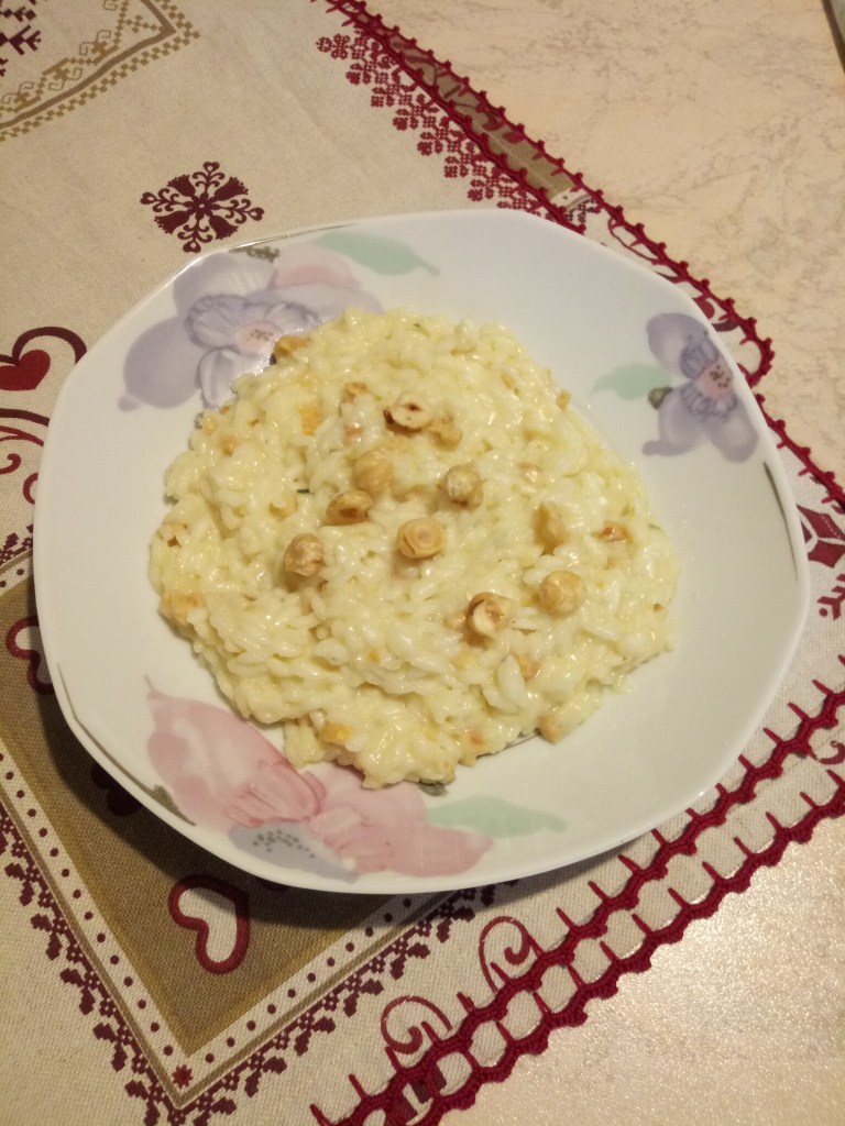 La ricetta di oggi è un risotto decisamente “minimo sforzo massima resa”. Infatti, in circa 20 minuti otterrete un piatto gustoso e originale, che unisce il sapore deciso del formaggio a quello più delicato e aromatico delle nocciole. Per realizzarlo vi serviranno: