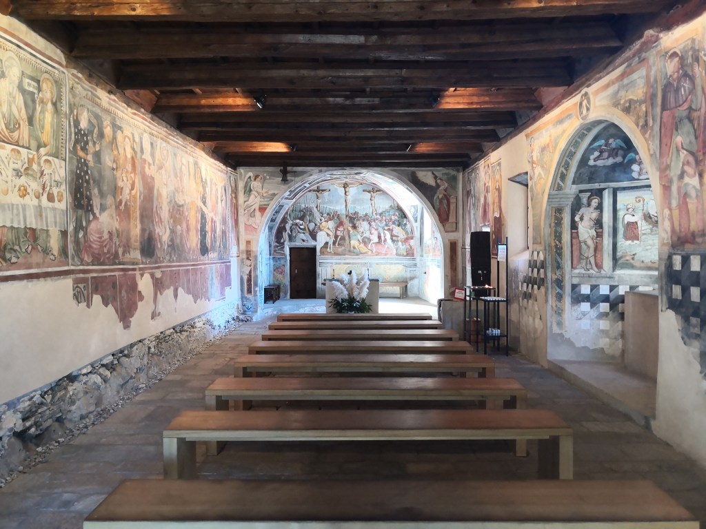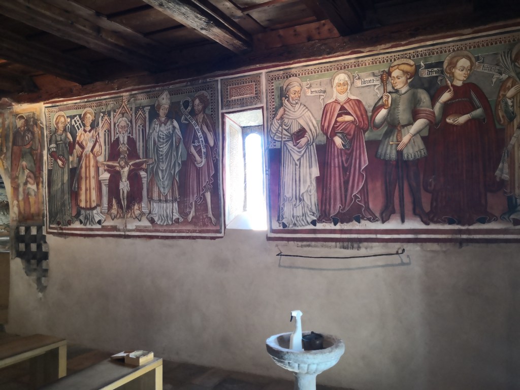 A 15 minuti da Curzutt si trova la bellissima chiesa di San Bernardo. Ho avuto la fortuna di godere in entrambe le occasioni dell’accompagnamento di una guida turistica, che ha saputo raccontare accuratamente la storia dell’edificio e degli affreschi risalenti al XIV e XV secolo, fra i quali spicca L’ultima cena.