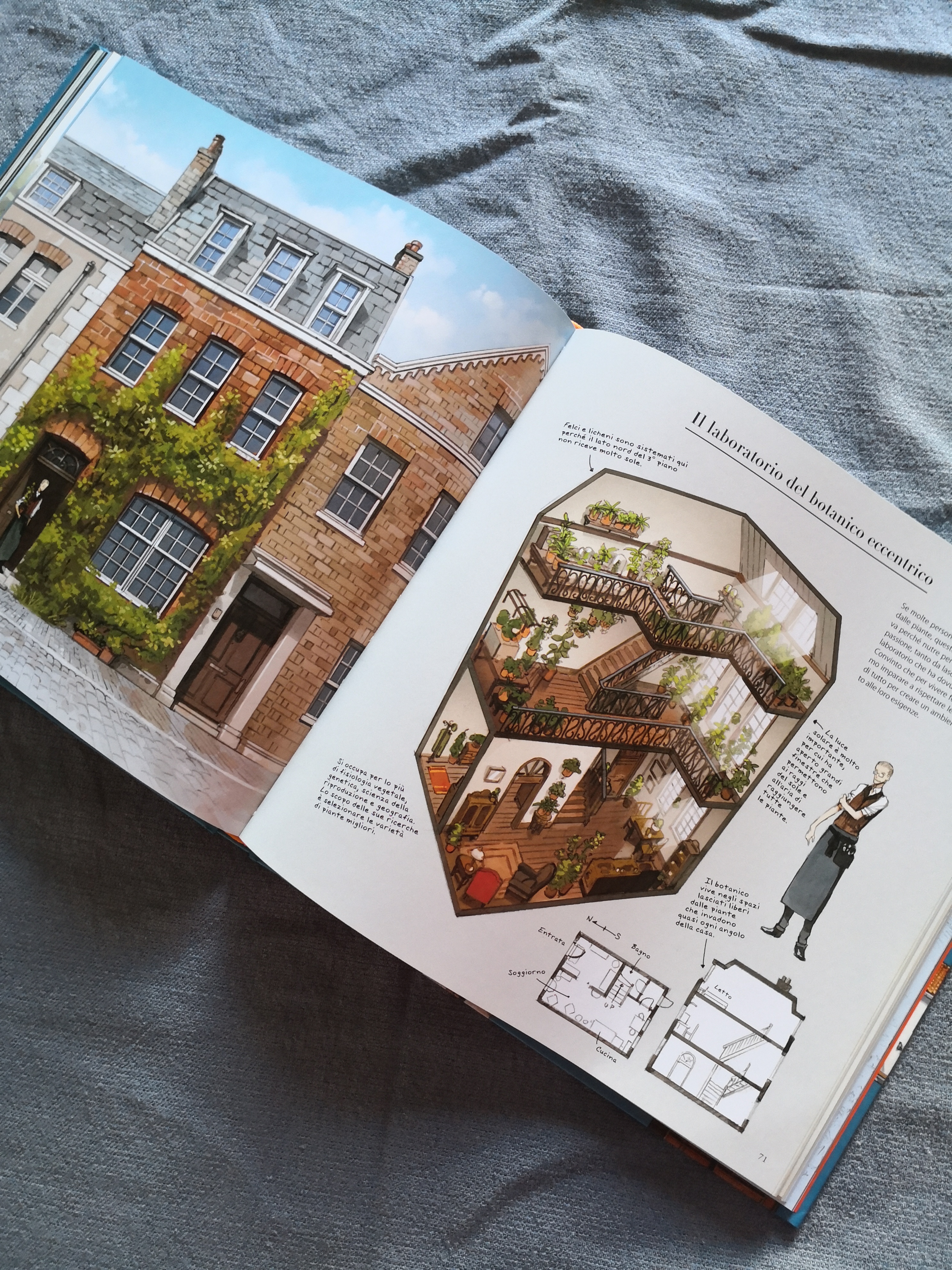 Al di là di questi aspetti sentimentali, consiglio la lettura di questo libro anche a chi desidera scoprire qualcosa in più sulle tecniche di illustrazione e sui processi creativi che portano alla creazione di un prodotto simile. Infatti, nell’ultima parte del volume sono raccolte spiegazioni approfondite su tutte le tavole, insieme a un interessantissimo affondo sulle fasi di realizzazione delle stesse (dalla ricerca sul soggetto, alla creazione dello schizzo, alla colorazione delle vedute interne ed esterne).