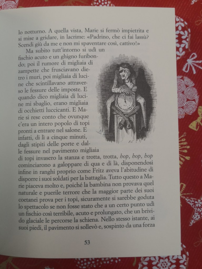 L’edizione di cui vi parlo è forse una delle più belle in circolazione per immergersi ancora di più nella famosissima “favola di Natale”. La versione francese di Alexandre Dumas è successiva di trent’anni all’originale di Ernst Theodor Amadeus Hoffmann (pubblicata a Berlino nel 1816) ma, pur essendone una riscrittura edulcorata, ebbe in molti contesti molto più successo di quella tedesca, tanto che fu lei ad ispirare Čajkovskij e il suo famoso balletto. Questo volume, edito da Interlinea, tascabile ed elegante nella sua semplicità, riporta le illustrazioni originali di Bertall, del 1845: una meraviglia per gli occhi!