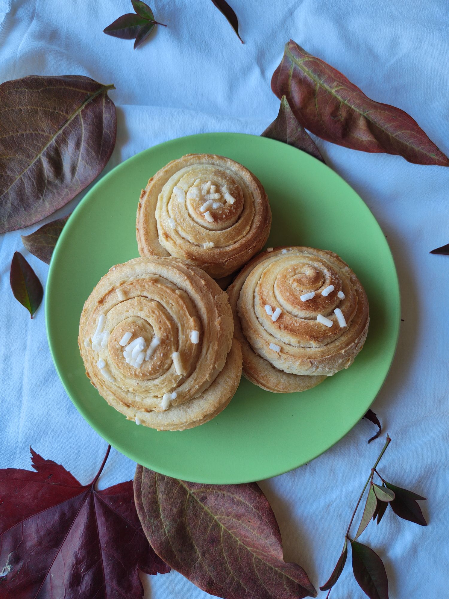Prima di infornare spennellatele in superficie con un goccio di latte e cospargetele con la granella di zucchero.