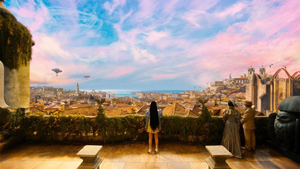 Il regista Yorgos Lanthimos – già conosciuto per L’aragosta (2015) e La favorita (2018), entrambi per me da recuperare – ha fatto con Povere creature! un lavoro magistrale, volto a non lasciare lo spettatore indifferente. Per mettere in scena il romanzo di Alasdair Gray, uscito per la prima volta nel 1992 con l’omonimo titolo, il regista sceglie un universo temporalmente indefinito: fonde l’epoca vittoriana, sede dell’ambientazione della sceneggiatura originale, dipinta nel film soprattutto attraverso i costumi e il design d’interni, con un improbabile futuro distopico in stile steampunk, in cui dominano macchine volanti, abnormi navi che sembrano città galleggianti, e cieli dalle tinte apocalittiche. A confondere ancor di più lo spettatore intervengono le inquadrature deformanti e disturbanti, con improbabili grandangoli e fish-eye, e la colonna sonora, costituita non tanto da musiche quanto più da suoni e accordi dissonanti, forse prodotti da strumenti a corda.